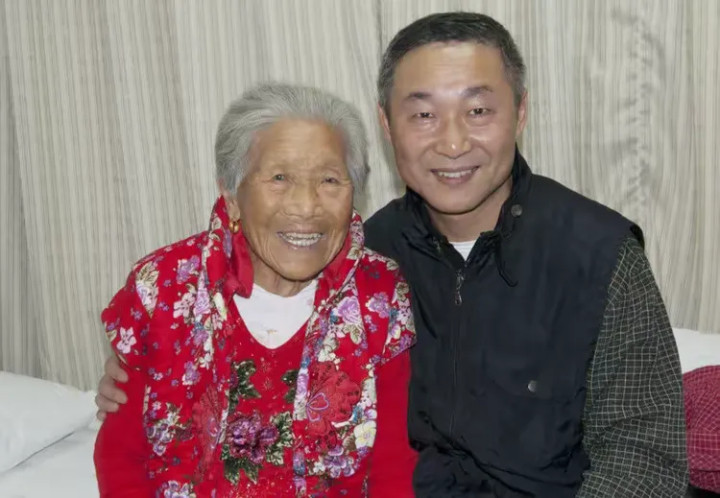 2011年10月作者与母亲。母亲患病在医院期间,她穿上新衣服很高兴。